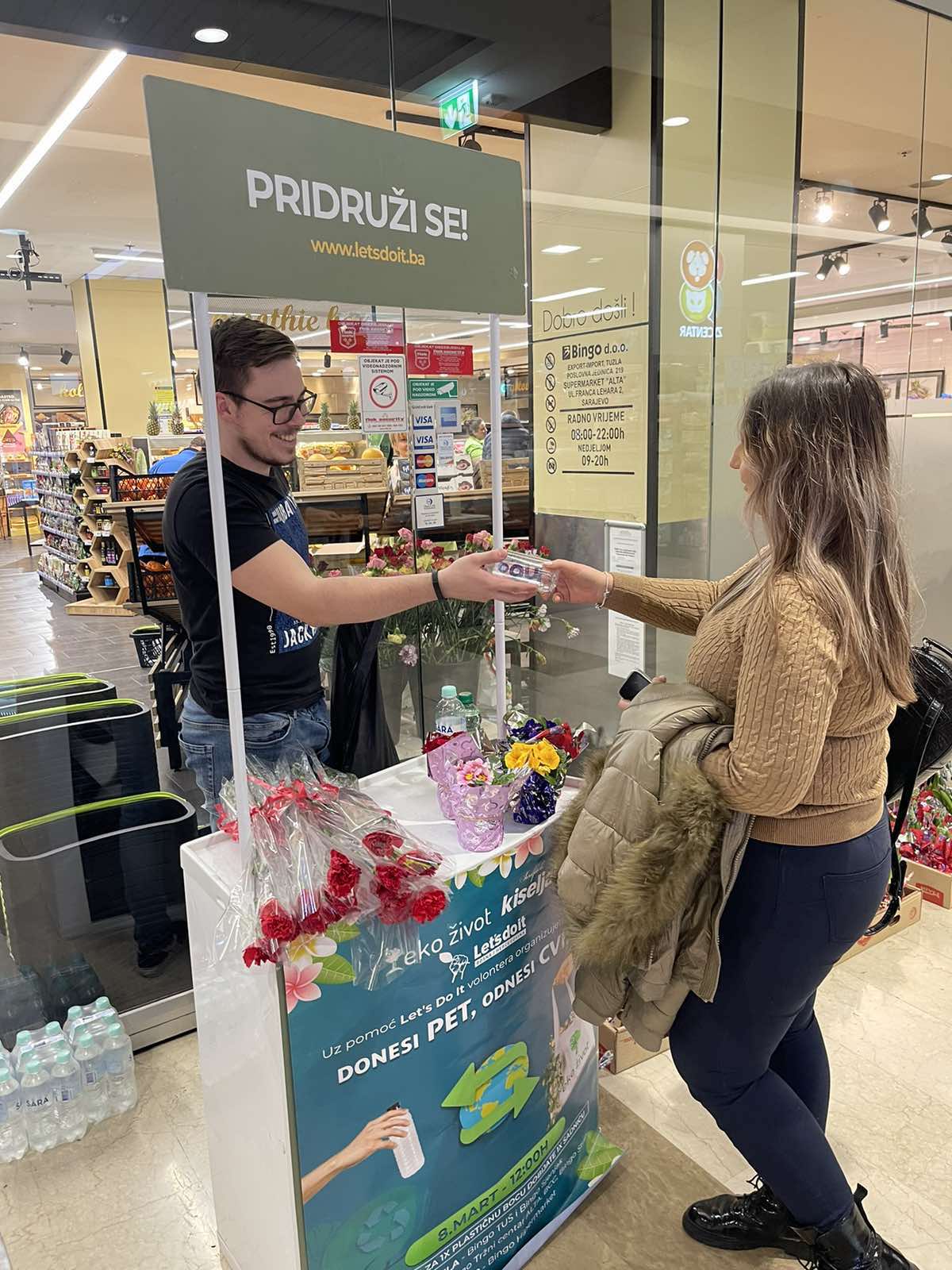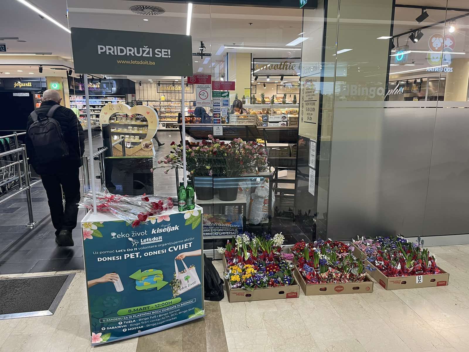 Građani Tuzle, Sarajeva i Mostara imali su priliku za 8.mart da na odabrane lokacije prilože pet ambalažu gdje bi u zamjeni dobili sadnicu cvijeća.