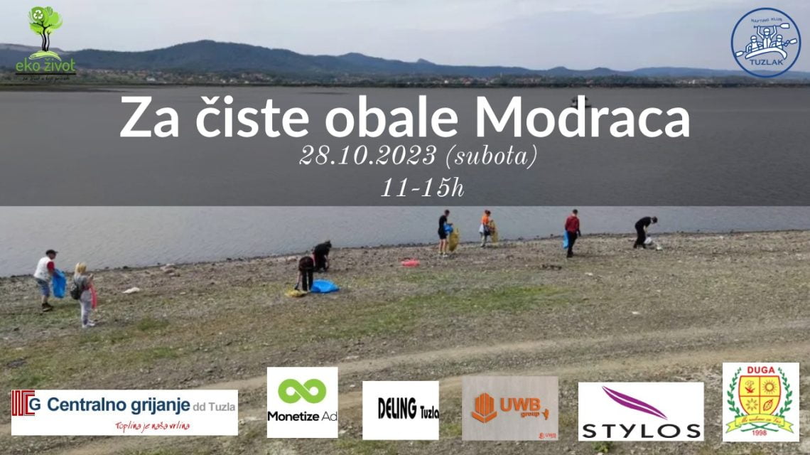 Dana 28.10.2023 (subota) u terminu 11-15h, Rafting klub “TUZLAK” organizuje ekoakciju pod nazivom ”Za čiste obale Modraca”. U skladu sa svojom misijom, Rafting klub “Tuzlak” svake godine u više navrata čisti obalu jezera Modrac, kao i drugih vodenih površina na području Tuzlanskog kantona. U septembru 2023. godine već je bila organizovana jedna eko akcija na obalama jezera Modraca. Planiramo 28.10.2023. godine napraviti još jednu ekoakciju u nastavku čišćenja obale jezera Modrac jer je utvrđeno da postoji velika potreba za tim.