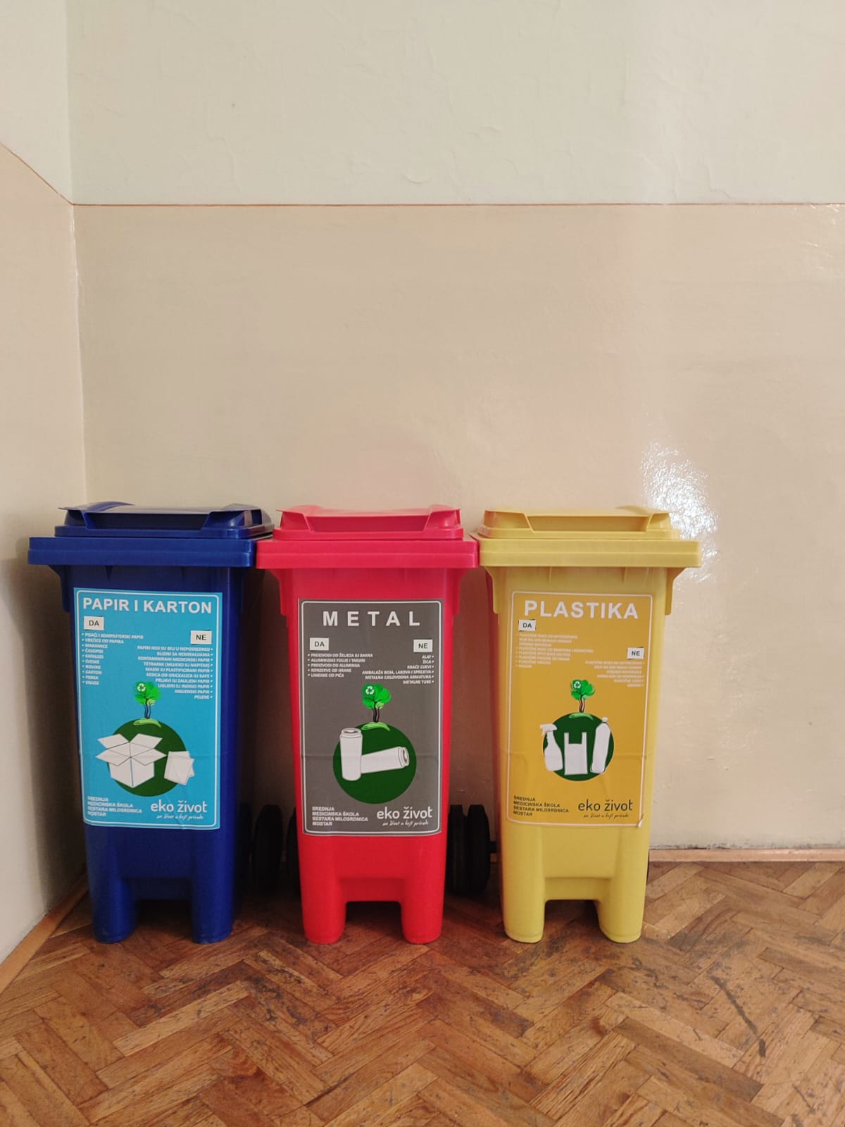 Eko života d.o.o. donirao je 12 spremnika za razvrstavanje otpada koje je škola postavila u dvorištu i unutrašnjosti škole s ciljem da započnu aktivnost odvajanja plastičnih boca, limenki i papira.