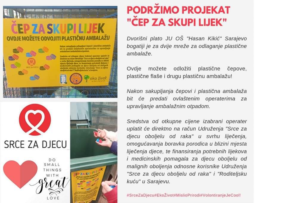 Već nekoliko mjeseci je u toku akcija Čep za skupi lijek koju su pokrenule dvije osnovne škole iz Sarajeva.
