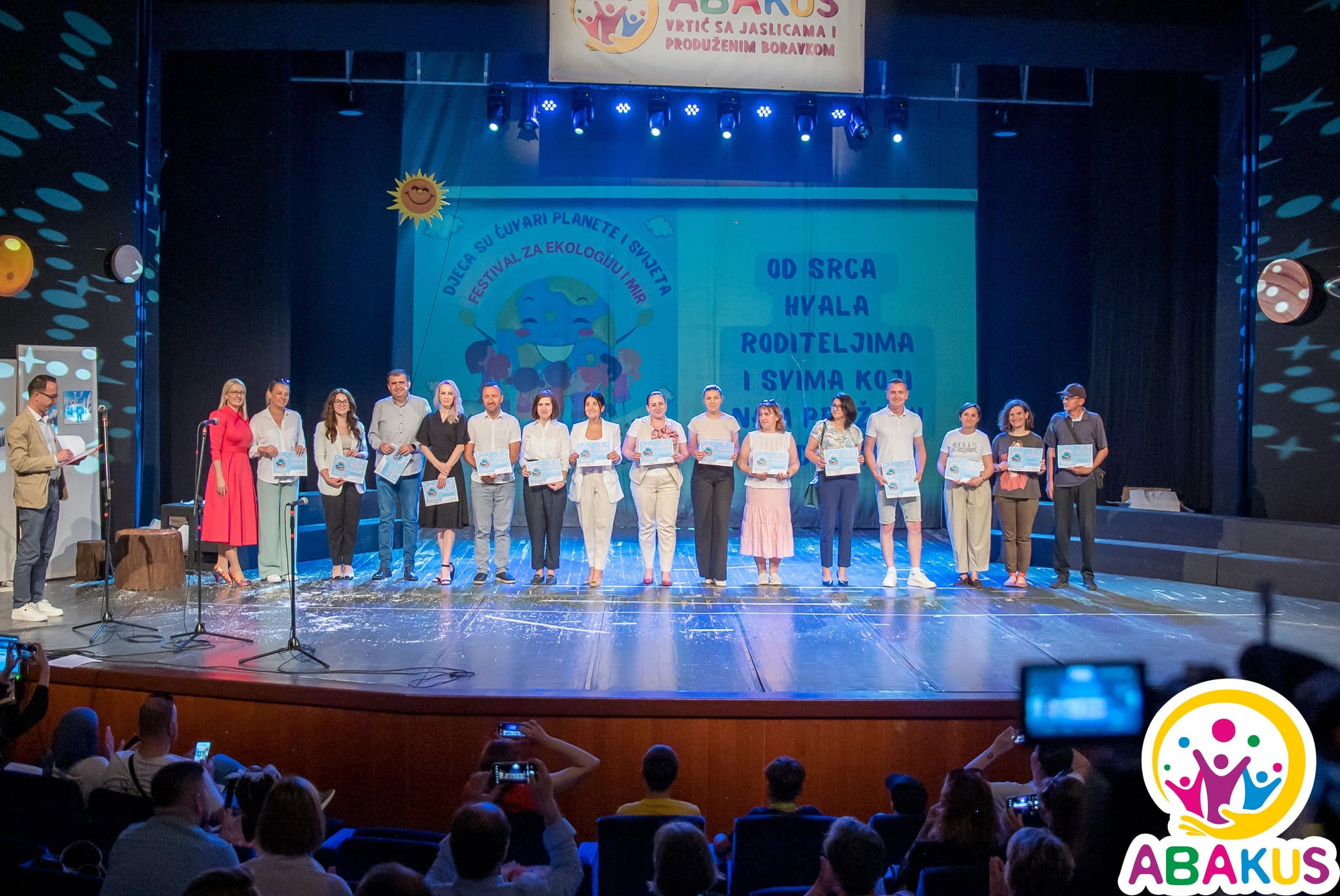 Pred punom salom roditelja, rodbine, zvanica i gostiju velike scene Bosanskog narodnog pozorišta u Zenici, 8.6.2024., održana je završna manifestacija tromjesečnog Festivala za ekologiju i mir „Djeca su čuvari planete i svijeta“ s ciljem jačanja svijesti o važnosti očuvanja planete Zemlje i očuvanja mira u svijetu, kao i prezentiranja uspješnog rada Privatne predškolske ustanove „Abakus“ Zenica. Opći cilj manifestacije je poticanje, razvijanje i promoviranje nadarenosti i talenata djece rane, predškolske i školske dobi, te jačanje samopouzdanja djece. Suorganizatori manifestacije su Bosansko narodno pozorište i udruženje „Abakus plus“ već treću godinu zaredom.